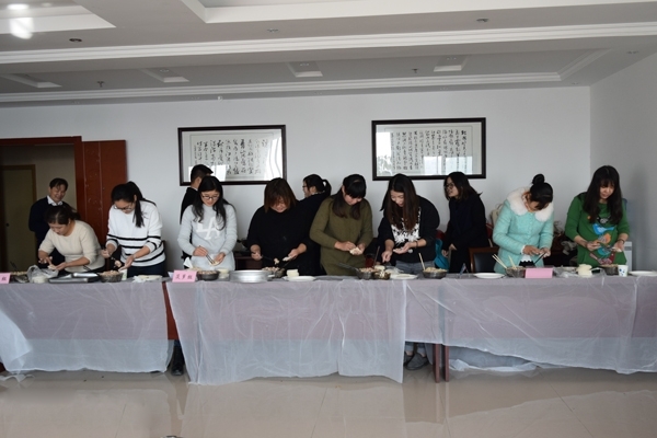 早上9點全體員工早早地開始了活動準備工作,大家一起動手,有的洗菜、有的切菜、有的拌餡,有的布置場地,忙得不亦樂乎,好像一家人一樣其樂融融。一切準備就緒后活動就正式開始了。